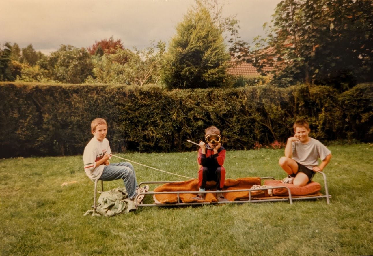 In the garden, we acted our part in some make-believe story. The broken climbing frame became a pirate ship. The wooden summer house that my Dad had built became a castle, then a school, then a space ship.